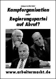 Für Arbeiterdemokratie in der Arbeiterbewegung! Die Gewerkschaften werden heute wie auch SPD und PDS von einer reformistischen Bürokratie beherrscht. Sie ist eng mit dem kapitalistischen System verflochten: durch Posten in Aufsichtsräten und Parlamenten, durch Einkommen, die weit über dem der Mitglieder liegen usw. Diese Schicht hat kein Interesse, die Verhältnisse grundlegend zu ändern, sie fungiert vielmehr als Vermittler, als "Tauschhändler" zwischen Kapital und Arbeit. Mit der gegenwärtigen Führung, mit ihrem Kurs der Klassenkollaboration und der "Ernennungsdemokratie" können nur die Pfründe einiger Apparatschiks und eines kleiner werdenden Teils der Arbeiteraristokratie gesichert werden - für die Masse des Proletariats und der lohnabhängigen Mittelschichten ist die Fortführung dieser Politik ein Debakel. Die Gewerkschaften müssen zu Kampforganisationen der Mitglieder werden! Dazu sind die Demokratisierung der Gewerkschaften und ein Programm des Klassenkampfes unabdingbar! Die Gewerkschaften dürfen sich den Entscheidungen der SPD oder der Regierung nicht unterordnen! Weg mit den Unvereinbarkeitsbeschlüssen des DGB! Für das Recht aller politischen und sozialen Gruppierungen (mit Ausnahme faschistischer und offen gewerkschaftsfeindlicher), sich in den Gewerkschaften zu versammeln, zu artikulieren und politische Fraktionen zu bilden! Für die Wählbarkeit und jederzeitige Abwählbarkeit der Funktionäre! Kein Funktionär darf mehr als ein durchschnittliches Facharbeitergehalt verdienen!